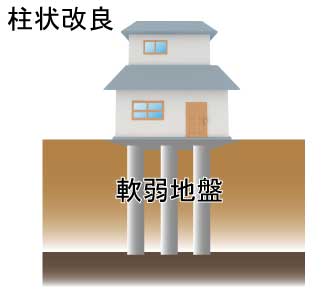 基礎直下に配置された柱状の改良体は、建物の荷重及び積載荷重を受けて、地盤に伝えます。